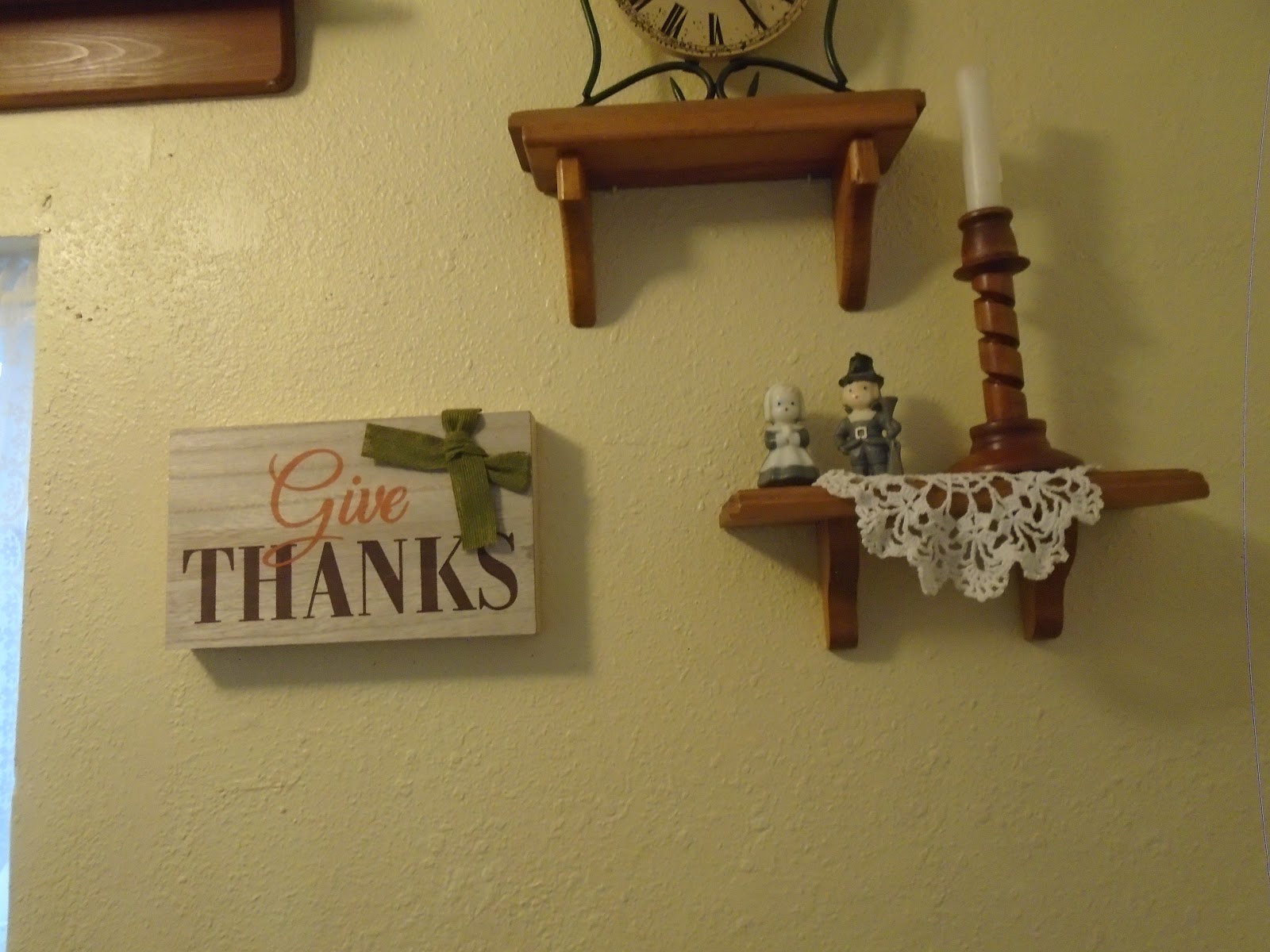 I set a formal table the night before or the day of the holiday. This is quite a task in itself, because our home is so small that our tiny gate-leg table needs to be taken out and expanded to its full size in the parlor in order to truly accommodate the dinner. (And the formal aspect of the parlor is a nice setting...a plus, in my opinion.) I also set out my serving bowls with utensils, which will be used for side-dishes, so I can see how everything will look on the table, and if it will be aesthetically pleasing. (This picture was taken from last year's celebration.)